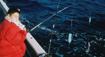 今日は飯岡沖、水深30〜40mのところでハナダイをねらった。船釣りはみんな初めて