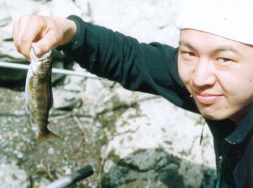 放流やまめをゲット。やられた!ちょっと大谷に鼻高々になられてしまった釣行だった。