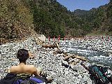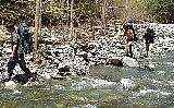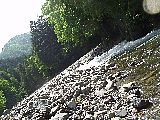 100m近くある尾根を下って河原に降り立ち川虫を捕る。この川の上流を4月の終わりにちょこっと