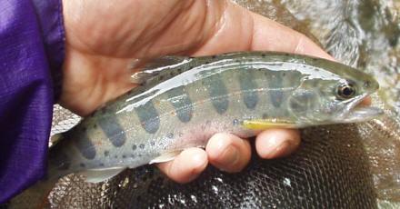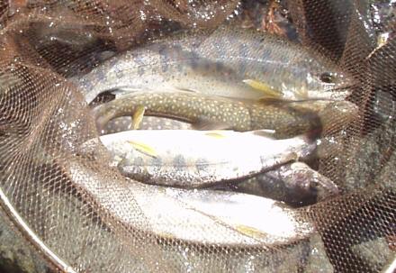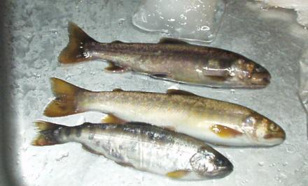 サイズが小さい。6寸サイズのイワナ、アマゴ、ヤマメはぽつぽつと釣れてくるが