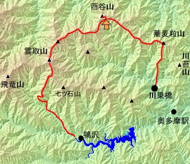 | 川乗橋〜 | 笙ノ岩山〜 | 蕎麦粒山〜 | 一杯水小屋〜 | 酉谷小屋 |