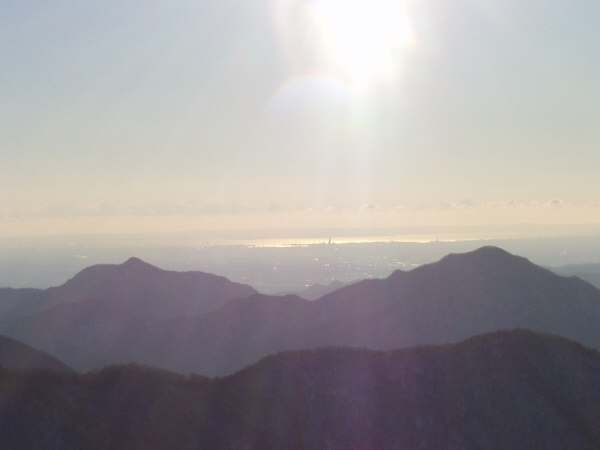 大岳と御前山の間から東京湾と横浜が見える ![]() |