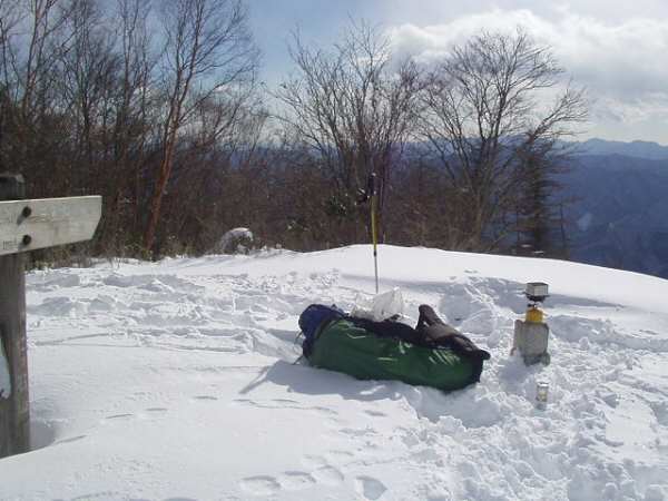 鷹ノ巣山山頂。今日の足跡は一人だけだった ![]() |