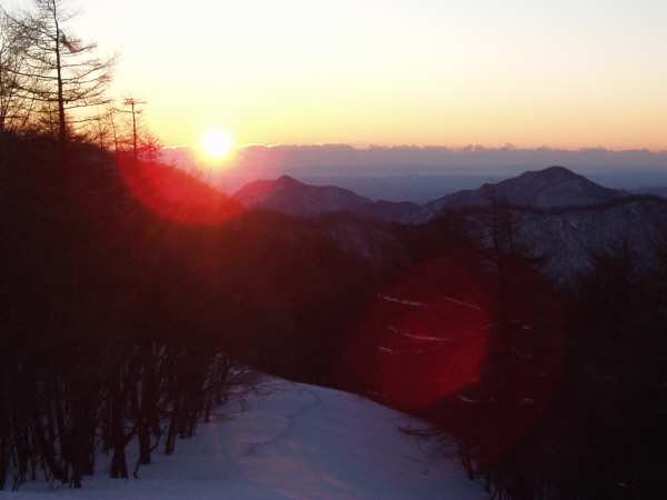 日の出。日陰名栗峰への登りの途中から。デジカメだとな〜 ![]() |