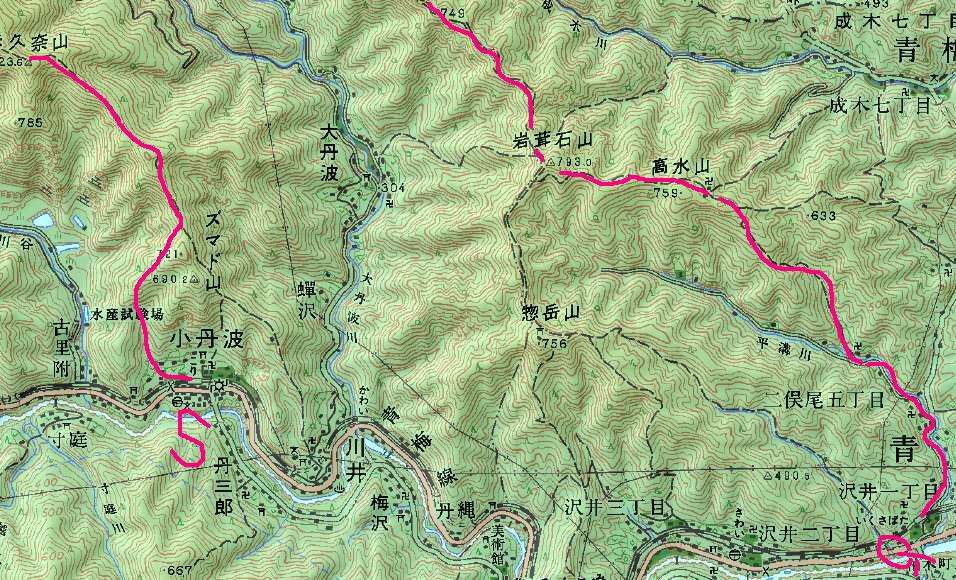 | 古里駅〜 | 川苔山〜 | 日向沢ノ峰〜 | 棒ノ折山〜 | 軍畑駅 |