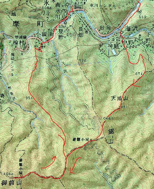 | 白丸駅〜 | 天地山〜 | 御前山〜 | 御前山避難小屋〜 | 九竜山〜 | 奥多摩病院〜駅 |